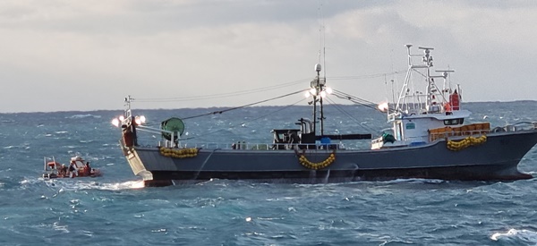 서귀포 해경이 18일 오전 우도 인근 해상에서 조업중 실종된 외국인 선원을 구조하고 있다. 사진=서귀포해경 제공