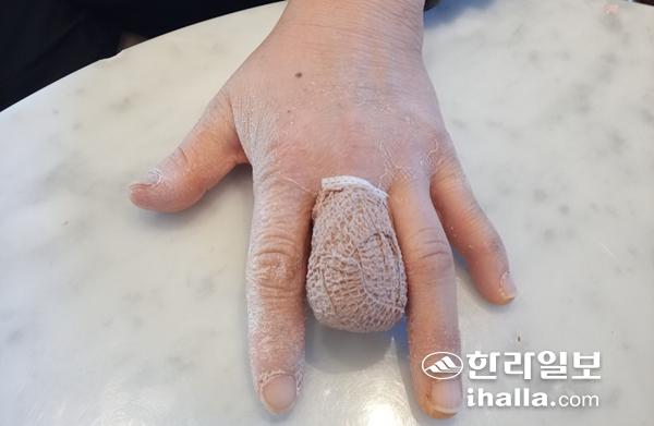 지난달 6일 도내 한 학교 급식소에서 감량기를 다루다 손가락이 절단된 A씨가 결국 접합에 실패했다. 사진=전국 학교 비정규직 노조 제주지부 제공