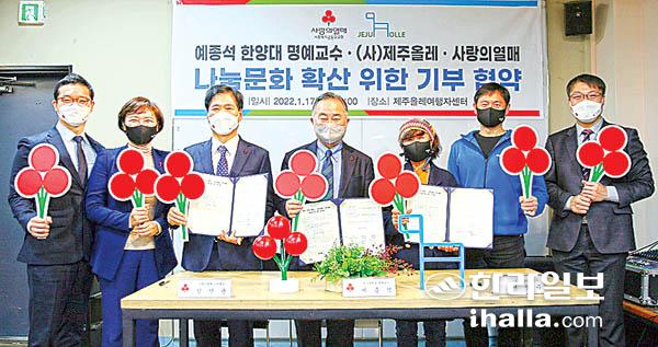 예종석 한양대학교 명예교수는 지난 17일 저서 '당선비책(나남)'의 인세를 사랑의열매 사회복지공동모금회(회장 조흥식)를 통해 (사)제주올레(이사장 서명숙)에 기부하기로 협약했다.