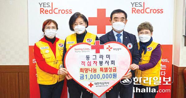 동그라미적십자봉사회(회장 이순자)는 지난 17일 대한적십자사제주특별자치도지사(회장 오홍식)를 방문해 소외된 이웃을 위한 희망나눔 특별성금 100만원을 기탁했다.