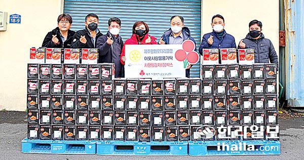 제주평화로타리클럽(회장 김현주)은 최근 제주시 오일장에 있는 학가산김치 앞에서 사랑의 김치 100박스를 제주사회복지공동모금회(회장 강지언)에 기탁했다.