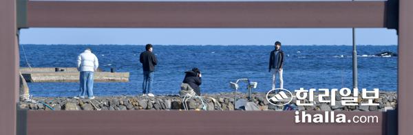 19일 제주시 구좌읍 하도리 포구를 찾은 관광객이 친구들과 사진을 찍으며 추억을 만들고 있다. 강희만기자