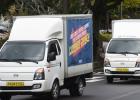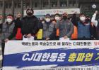 전국택배노동조합 제주지부가 지난 13일 제주도청 앞에서 기자회견을 가진 이후, CJ대한통운 파업 해결을 촉구하며 택배 차량 10여 대를 동원해 차량 행진을 벌이고 있다. 사진=한라일보DB