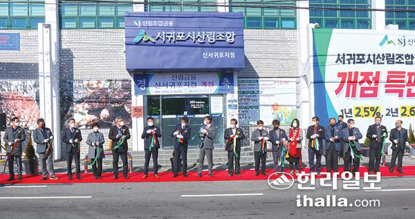 서귀포시산림조합(조합장 오형욱)은 산림금융 신서귀포지점 개점을 기념하기 위해 지난 20일 김태엽 서귀포시장 등을 비롯해 임원·대의원 등 관계자들이 참석한 가운데 개점식 및 나무 나눠주기 행사를 개최했다.