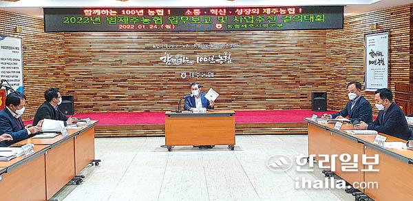 제주농협지역본부(본부장 강승표)는 24일 지역본부 대회의실에서 중앙회, 농협은행 및 계열사 직원 등이 참석한 가운데 '2022년 범제주농협 업무보고 및 사업추진 결의대회'를 가졌다.