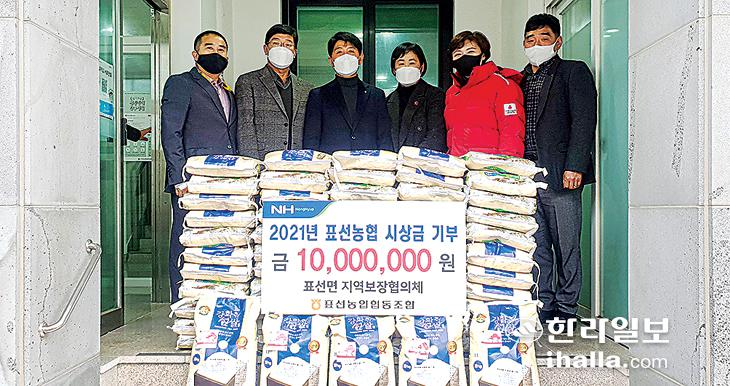 표선농협(조합장 고철민)은 지난 25일 표선 동부종합복지관에서 표선면장, 표선면지역보장협의체장 등이 참여한 가운데 1000만원 상당의 복지지원품(쌀 10㎏, 240포)을 표선면지역보장협의체에 기부했다.