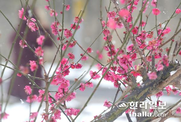 봄을 부르는 홍매화. 한라일보DB
