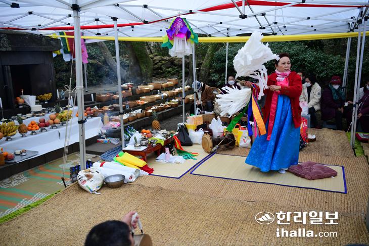 제주도무형문화재로 지정된 송당리마을제 중 새해 첫 행사인 '신과세제'가 13일(음력 1월 13일) 제주시 구좌읍 송당본향당에서 열려 마을 수호신에게 한 해의 무사안녕과 풍요를 기원하는 제의가 진행되고 있다. 강희만기자