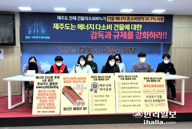 탈핵·기후위기 제주행동은 15일 기자회견을 열고 제주도의 에너지 다소비 건물에 대한 관리·감독을 요구했다. 김도영기자