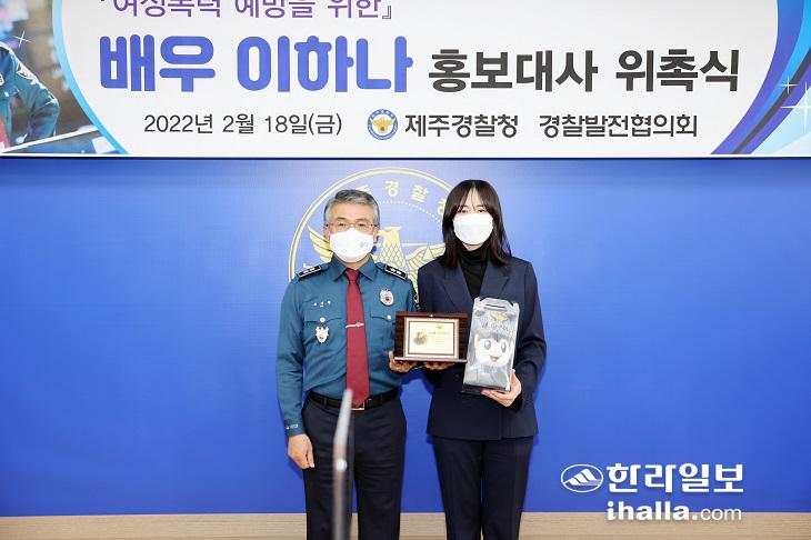 지난 18일 드라마 '보이스'에서 112신고센터장 역할을 분한 배우 이하나 '제주경찰 여성폭력 예방 홍보대사'로 위촉됐다. 사진=제주경찰청 제공
