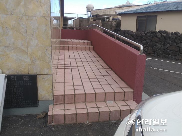 안덕면 투표소 모습. 경사로에 단차가 있어 휠체어 접근이 어렵다. 사진=(사)제주장애인인권포럼 제공