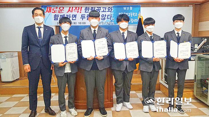 제주 향토기업 (주)한라산(대표이사 현재웅)은 2일 한림고등학교와 한림공업고등학교 학생 7명에게 장학금 총 400만원을 전달했다. (주)한라산은 도내 청소년 인재 육성을 위한 장학사업으로 1996년부터 매년 한림지역 학생들을 대상으로 장학금을 전달해오고 있다. 또 도내 43개 읍면동의 우수 장학생 지원과 인재 육성을 위한 '2022 드림 장학금'을 지원하고 있다.