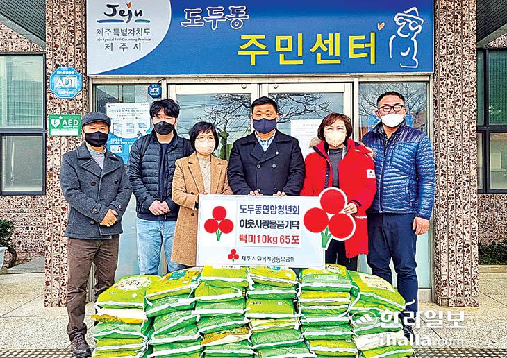 제주시 도두동연합청년회(회장 이상수)는 2일 도두동주민센터(동장 문정희)에서 사랑의 쌀 650㎏을 제주사회복지공동모금회(회장 강지언)에 기탁했다.