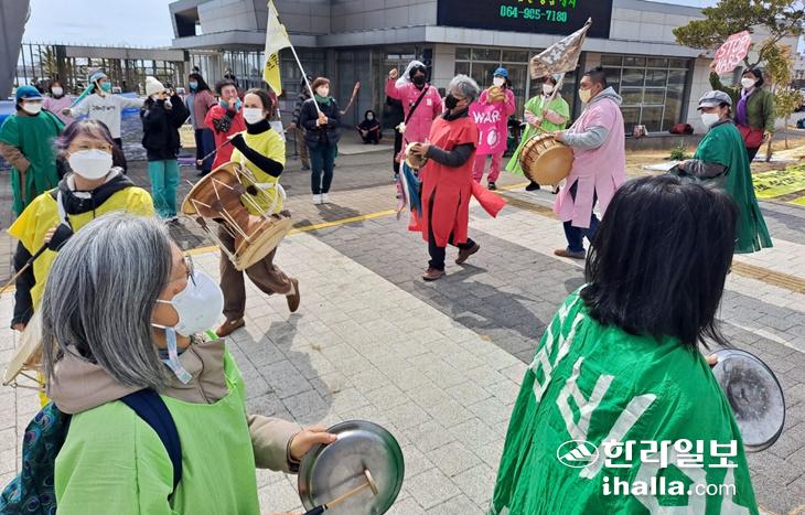 강정마을해군기지반대주민회와 강정평화네트워크가 7일 서귀포시 강정마을 해군기지 일대에서 '구럼비 발파 10년 기억 행동: 오늘도 이어지는 강정의 하루'의 주제로 문화행사를 이어가며 평화를 염원했다.