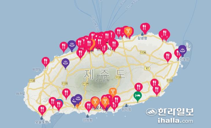 제주도 홈페이지 착한가격업소 안내 지도.