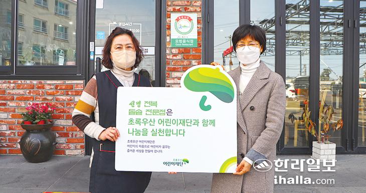 제주시 이호동에 위치한 선명 전복돌솥 전문점(대표 김경미)은 지난 8일 초록우산 어린이재단 제주지역본부(본부장 박정숙)와 서귀포시후원회(회장 김미자)가 진행하고 있는 나눔 릴레이캠페인에 동참했다.
