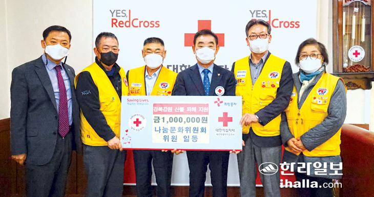 제주적십자사 나눔문화위원회(위원장 강창용)는 21일 대한적십자사제주특별자치도지사(회장 오홍식)를 방문해 경북·강원 산불피해 지원을 위해 사용해 달라며 성금 100만원을 전달했다.