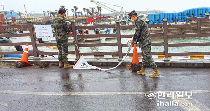 서귀포시 성산읍과 성산읍예비군중대(중대장 임현섭)는 지난 21일 불법 유동성 광고물 정비를 실시했다.