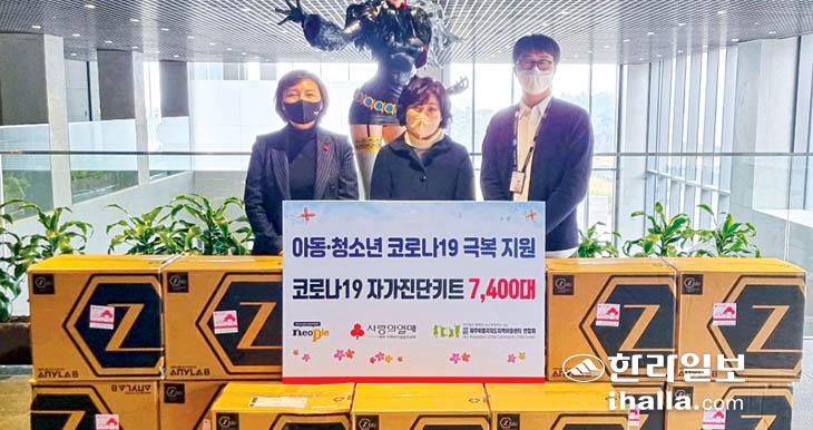 이번 협약을 통해 네오플은 제주사회복지공동모금회를 통해 도내 지역아동센터 65곳에 아동 및 센터 종사자 포함 1850명이 이용할 신속항원검사(개인용) 키트 7400개(1인당 총 4회 분)를 지원할 예정이다.
