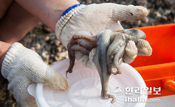 해루질로 잡은 문어. 한라일보DB