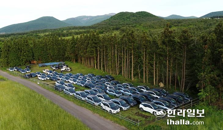 한라산에 중턱에 방치된 BMW 전기차. 연합뉴스