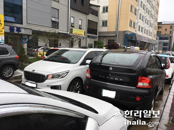서귀포시내 이면도로 불법주차. 한라일보DB