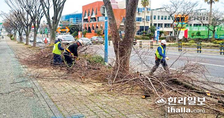 제주시는 건강한 수목 생육환경 조성을 위해 4월 말까지 1억8700만원을 투입해 가로수 가지치기 사업을 추진한다. 가로수 정비 사업은 신호등, 간판 가림 등 각종 민원을 해소하고 수목의 수세 회복과 병해충 발생을 예방하기 위해 해마다 시행하고 있다.