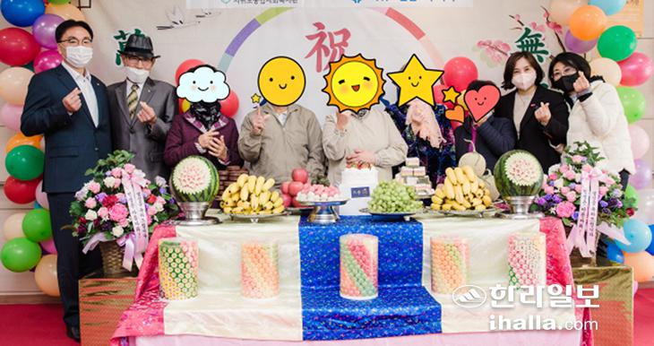 서귀포종합사회복지관(관장 강희정)은 최근 지역내 홀로사는 어르신들을 모시고 생신잔치를 열었다. 이날 동홍3단지아파트 지역민 중 1951년생 이상 3월 생신을 맞으신 어르신 총 19명중 거동이 불편한 어르신 13명을 제외하고 6명이 참석해 추억의 사진찍기, 서귀포신협의 생신상 전달 등의 행사가 이뤄졌다.