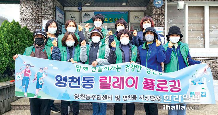 서귀포시 영천동은 3월부터 10월까지 자생단체와 함께 걷기와 동시에 쓰레기를 줍는 활동인 플로깅(plogging) 활동을 실시하고 있다. 지난 11일 영천동새마을부녀회에서 관내 상효동 일원 마을안길 플로깅 활동을 시작으로, 주민자치위원회, 지역자율방재단 등 관내 자생단체가 이어서 추진할 계획이다.