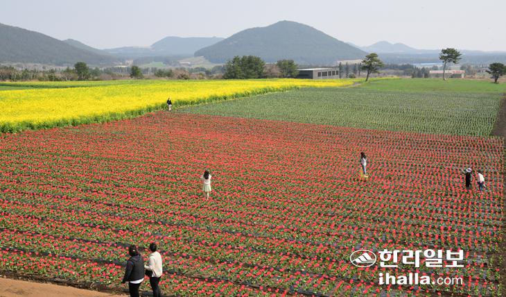 완연한 봄날씨를 보인 24일 서귀포시 표선면 성읍리 보름왓 정원에 봄꽃이 활짝 피어 싱그러운 제주의 봄 풍경을 그려내고 있다. 강희만기자