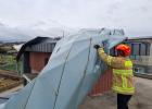 '태풍급 강풍'이 몰아친 지난 25일 오후 소방대원들이 제주시 조천읍 대흘리 한 도로에 쓰러진 가로수에 대한 안전조치를 하고 있다. 제주자치도 소방본부 제공