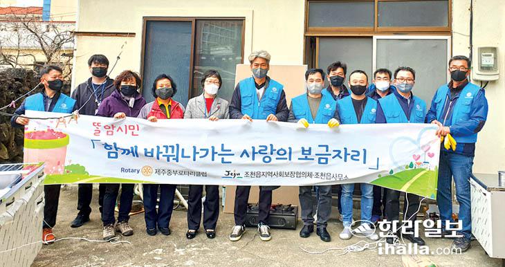 제주시 조천읍은 지난 25일 제주중부로타리클럽(회장 나필수)과 연계해 관내 주거환경이 열악한 저소득 독거노인 가정의 부엌 보수, 외벽 방수 시공 등 주거환경 개선 활동을 펼쳤다.