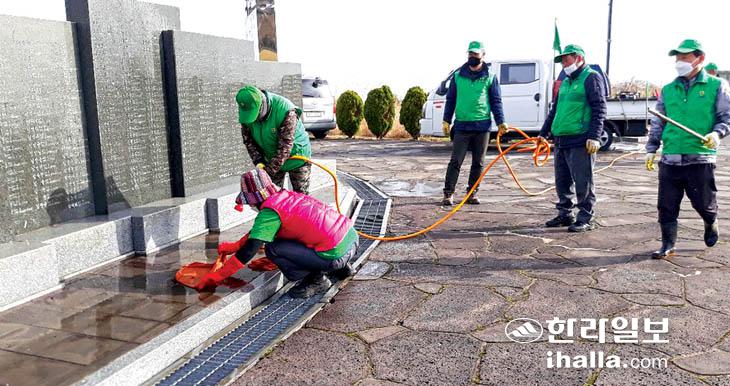 제주시 봉개동은 지난 27일 봉개동새마을지도자협의회(회장 부기봉), 봉개동새마을부녀회(회장 윤현숙) 회원 30여 명이 참여해 4·3평화공원 내 위령비 세척 등 주변 환경정비를 실시했다.
