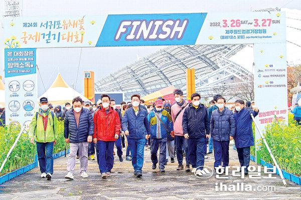 '제24회 서귀포 유채꽃 국제걷기대회'가 지난 26일 제주월드컵경기장에서 개막, 300여 명이 참가한 가운데 27일 성황리에 폐막했다.