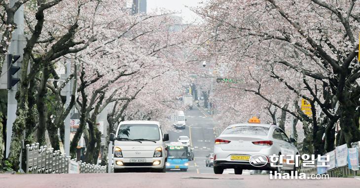 왕벚꽃 만개한 서귀포 중문시가지. 한라일보DB