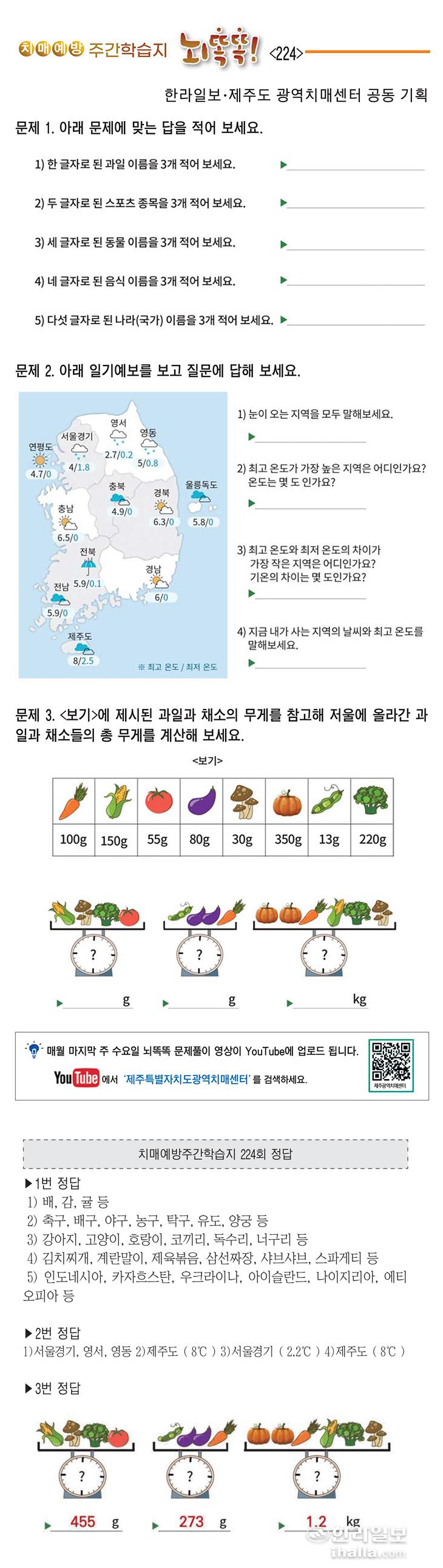 [치매예방주간학습지 뇌똑똑](224)