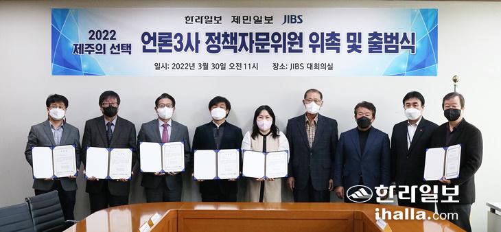 한라일보·제민일보·JIBS제주방송 등 제주 언론 3사는 30일 JIBS 대회의실에서 '2022 제주의 선택 언론3사 정책자문위원회 위촉 및 출범식'을 개최했다.