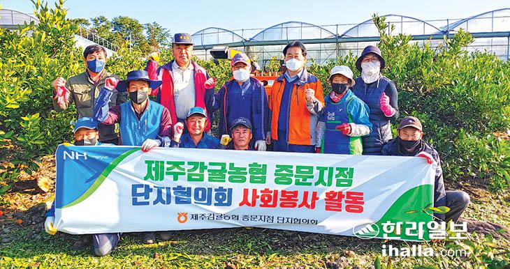 제주감귤농협(조합장 송창구) 중문감귤단지협의회(회장 원방민)는 지난 29일 중문지점 여성 조합원(허춘자)의 과원에서 전정한 가지를 무상으로 파쇄하는 봉사활동을 실시했다.