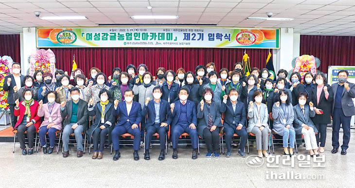 제주감귤농협(조합장 송창구)과 제주특별자치도 농업기술원(원장 허종민)이 공동으로 주관하는 '여성감귤농업인아카데미 제2기 입학식'이 지난 29일 제주감협 본점 대회의실에서 개최됐다.