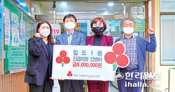 제주사회복지공동모금회(회장 강지언·이하 제주사랑의열매)는 30일 제주시 일도1동에 지역주민 사각지대 해소를 위한 긴급지원 및 간병비 사업비로 800만원을 지원했다.