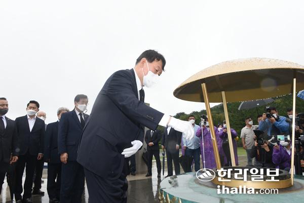 대통령 후보시설 제주43평화공원 참배하는 윤석열 당선인. 한라일보DB