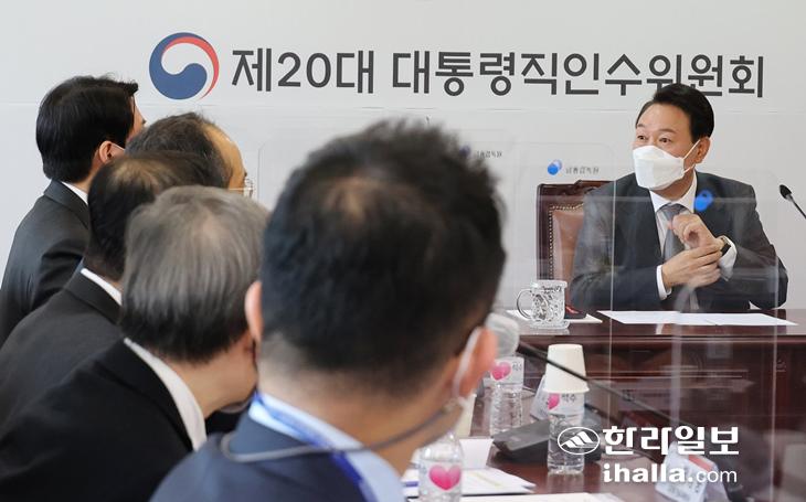 업무보고 회의 주재하는 윤석열 당선인. 연합뉴스