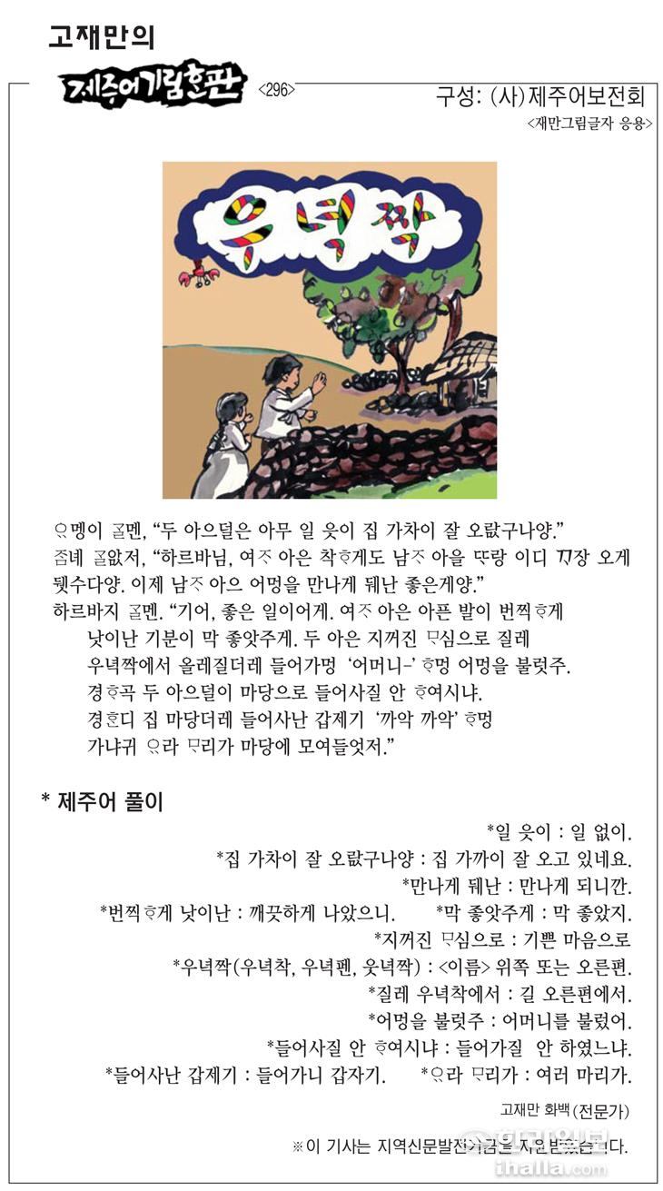 [고재만의 제주어기림혼판] 제주어 풀이(296)