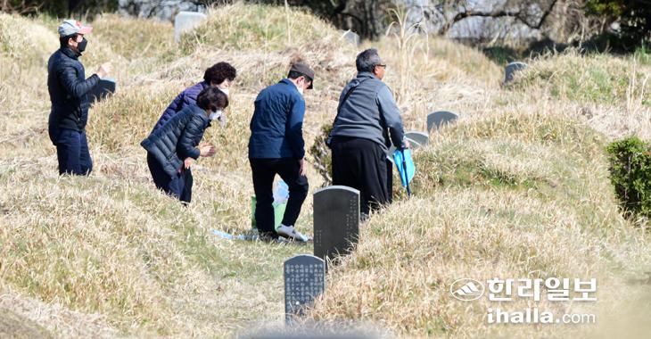 한식이자 식목일인 5일 제주시 가족공동묘지에는 성묘객들이 찾아 산소를 돌보며 조상의 음덕을 기렸다. 강희만기자