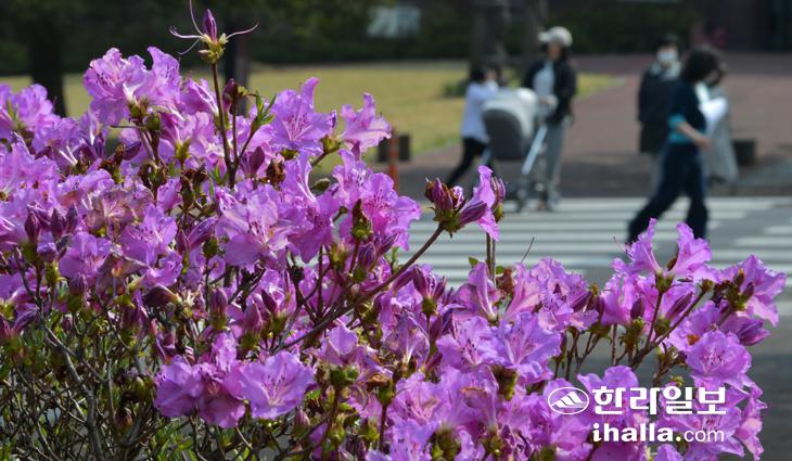 완연한 봄날씨를 보인 7일 제주대학교 캠퍼스에 분홍빛 철쭉이 활짝 피어나 봄의 상큼함을 더해 주고 있다. 강희만기자
