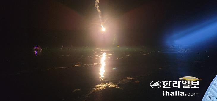 조명탄을 발사해 야간 수색을 벌이고 있는 모습. 제주해양경찰청