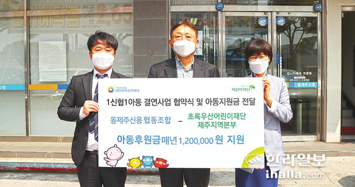 이번 협약을 통해 동제주신협은 지역 내 도움이 필요한 아동 1명과 결연해 성인이 될 때까지 지원할 예정이다.