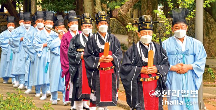 10일 제주시 삼성혈(三姓穴)에서 탐라국 시조 고(高)·양(梁)·부(夫) 삼을나(三乙那)의 위업을 기리고 도민 안녕을 기원하는 춘기대제가 봉행됐다. 강희만기자
