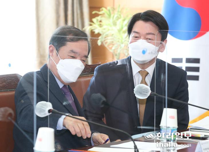 안철수 인수위원장과 김병준 지역균형발전특위원회 위원장(왼쪽). 연합뉴스
