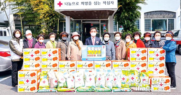 대한적십자사제주특별자치도지사(회장 오홍식)는 최근 4·3유족시부녀회(회장 김효자) 미망인들에게 백미와 레드향 등 500만원 상당의 물품을 지원했다.